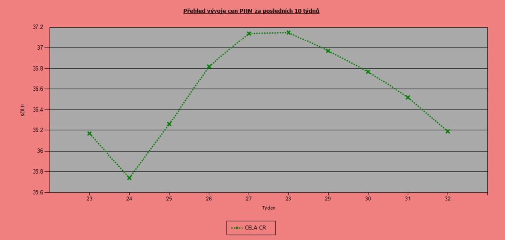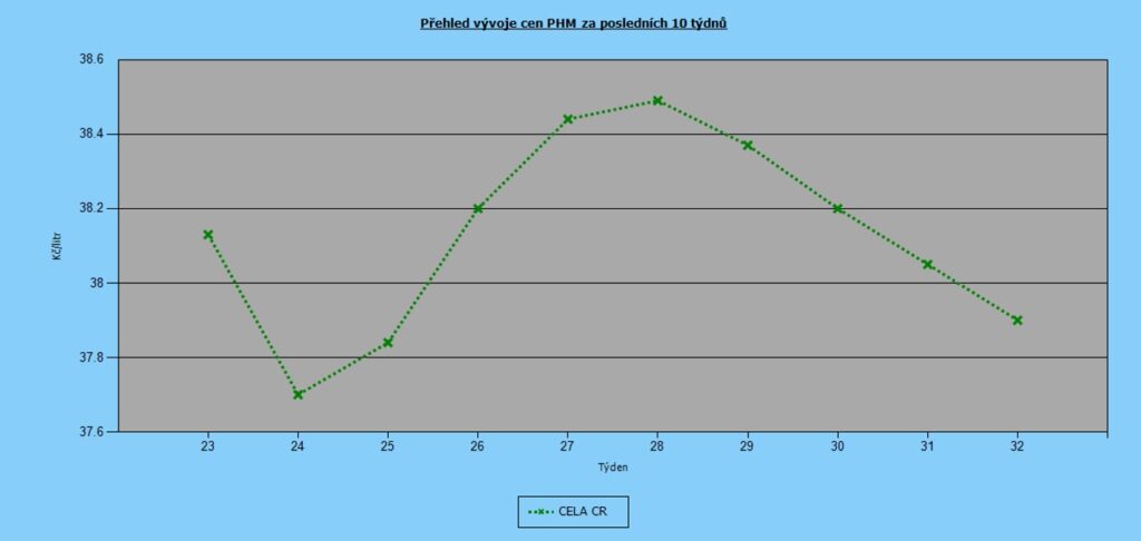 Ceny pohonných hmot nadále klesají. Natural 95 zlevnil o 15 haléřů na průměr 37,90 Kč/l. Naftu tankujeme levněji o 33 haléřů, v průměru za 36,19 Kč/l.