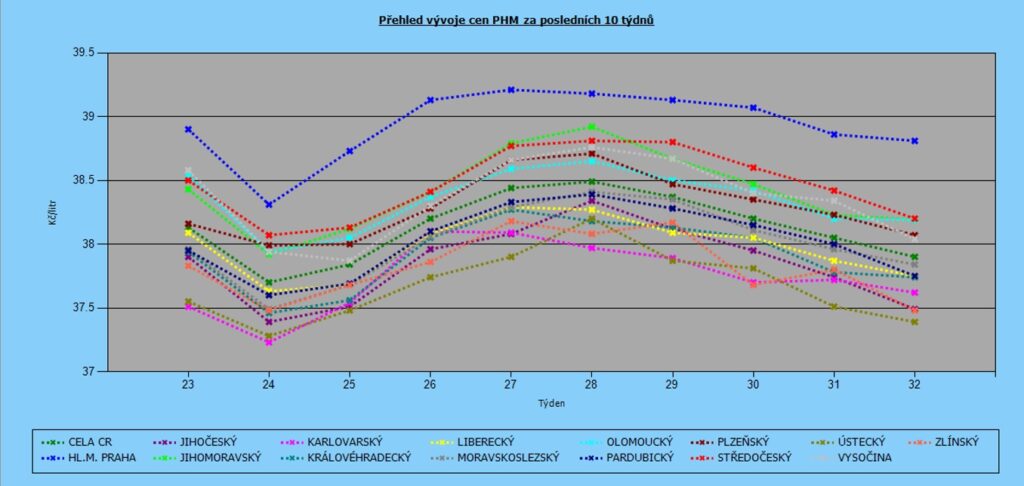 Naopak nejlevnější kraje se dle druhu paliva liší. Natural 95 vycházel nejlépe v Ústeckém (37,39 Kč/l) a Jihočeském kraji (37,40 Kč/l). Naftu se vyplatilo dotankovat v Karlovarském (35,50 Kč/l) a Zlínském kraji (35,52 Kč/l).