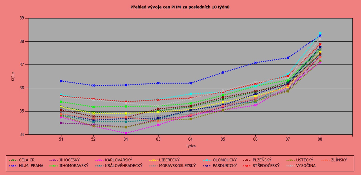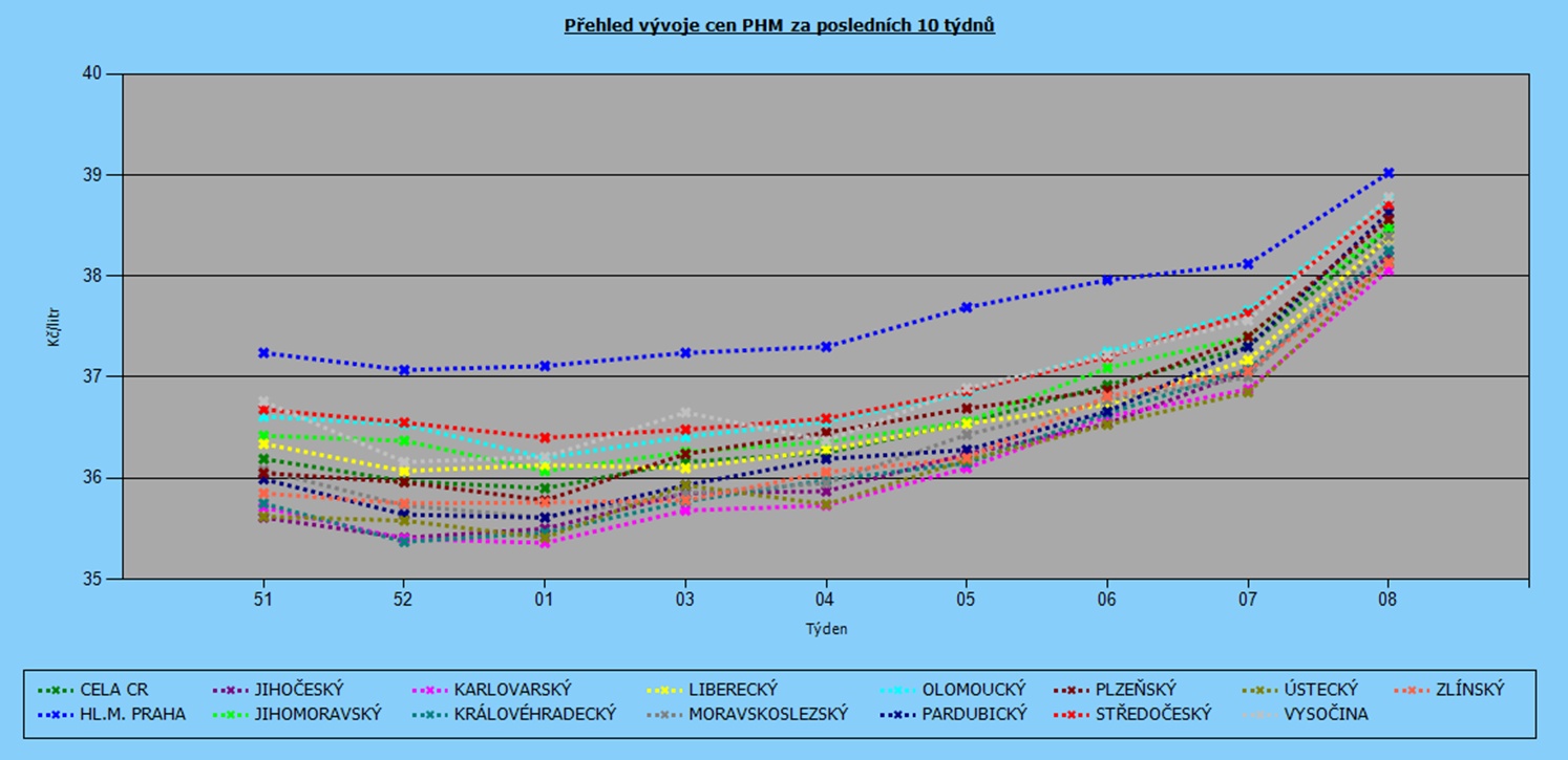Vývoj cen nafty podle krajů