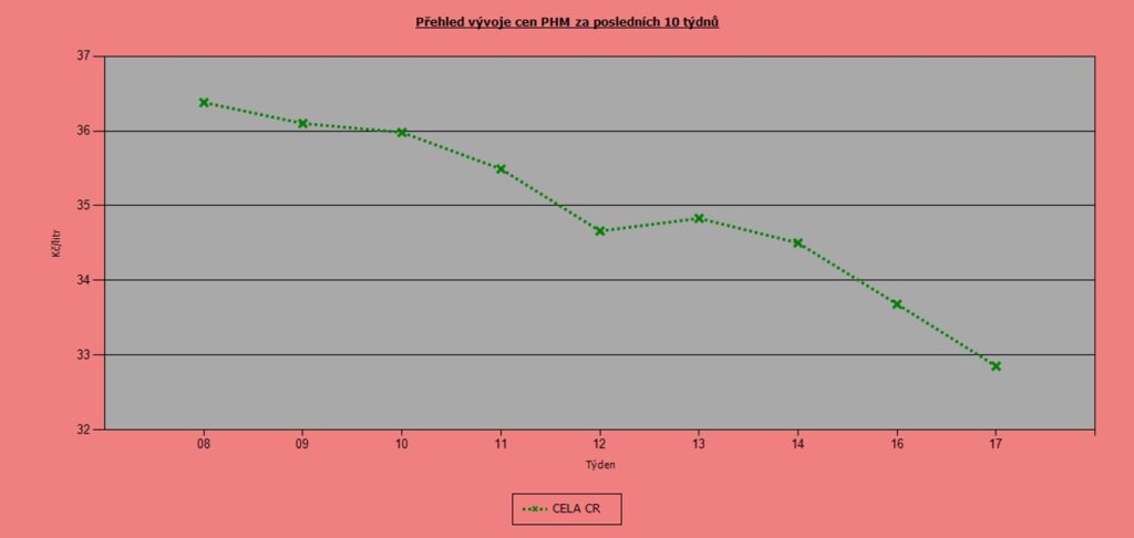 Uplynulý týden byl opět ve znamení snižování cen pohonných hmot. Natural 95 zlevnil o 28 haléřů na 37,42 korun za litr. Za naftu zaplatíme o 83 haléřů méně a v průměru ji tankujeme za 32,85 korun za litr. Zajímavostí je, že v případě obou paliv jsou identické nejdražší i nejlevnější kraje.