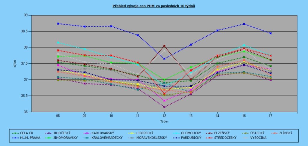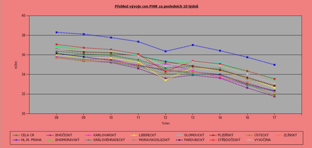 Vývoj cen nafty podle krajů