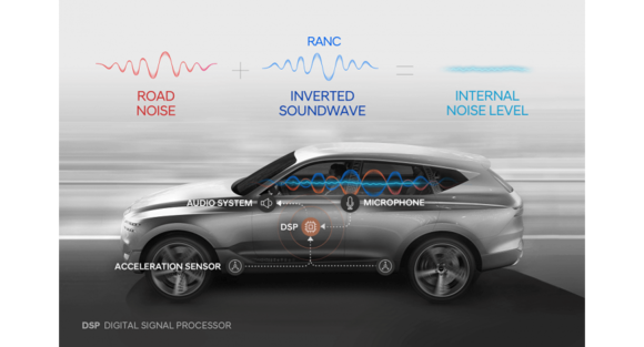 Hyundai je díky první technologii RANC na světě schopen výrazně vylepšit odhlučnění interiéru. Nový systém dokáže analyzovat různé druhy hluku v reálném čase a vysílat zvukové vlny s opačnou amplitudou. Nová technologie může například zpracovávat různé druhy hluku od podvozku, jako jsou rezonující zvuky, vznikající mezi pneumatikami a koly, nebo dunivé zvuky, které se šíří od vozovky vzhůru.