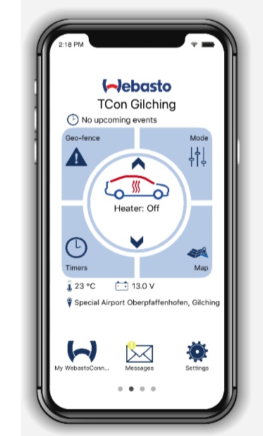 Nezávislá topení Webasto lze ovládat jak manuálními, tak i dálkovými ovladači. Dle typu topení lze vybrat vždy několik typů ovladačů. Nejmodernější je ovládání pomocí mobilního telefonu. Pomocí aplikace ThermoConnect můžete ovládat topení, sledovat teplotu interiéru a polohu vozidla. ThermoConnect umožňuje neomezený dosah. Díky integrované eSIM a globálnímu pokrytí mobilními sítěmi můžete topení ovládat odkudkoliv, kde máte přístup k internetu.