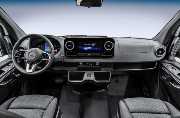 Velký rozsah nabídky sahá od základní verze pro zákazníky citlivé na cenu, kteří oceňují osvědčené přednosti modelu Sprinter, až po highendovou variantu s ušlechtilými materiály v interiéru. Příkladem přizpůsobitelnosti interiéru je koncept odkládacích prostorů. Volit lze otevřené, uzavíratelné nebo uzamykatelné schránky ve stropní části a na přístrojové desce, které umožňují přesně přizpůsobit pracoviště za volantem příslušným požadavkům. Prostřední části přístrojové desky dominuje inteligentní informační a zábavní systém. Na vrcholu produktové palety stojí nová generace telematických systémů s maximálním síťovým propojením. Zákazník se však může informačního a zábavního systému také zcela vzdát ve prospěch odkládací schránky, aniž by přišel o síťově propojené vozidlo.