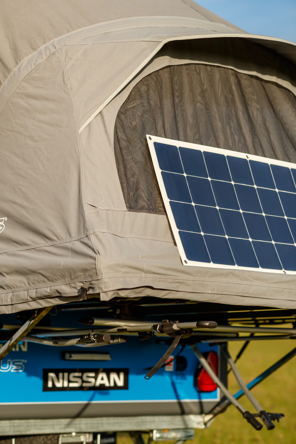 Pokud se nikde v blízkosti kempovacího místa 230V zásuvka nenachází, je jednotka Nissan Energy ROAM vybavena DC vstupem pro napájení ze solárního panelu. 400W solární panel dokáže jednotku plně nabít za dvě až čtyři hodiny.