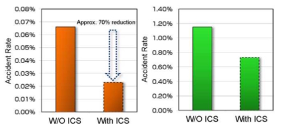 Při vyhodnocení výsledků vyšlo najevo, že počet nehod v důsledku sešlápnutí nesprávného pedálu se snížil přibližně o 70, což představuje 1% zlepšení a počet nehod související s couváním poklesl o 40 %. Automobilka tak došla k závěru, že systém ICS může skutečně pomoci předcházet nehodám na parkovištích, případně pomůže minimalizovat škody.