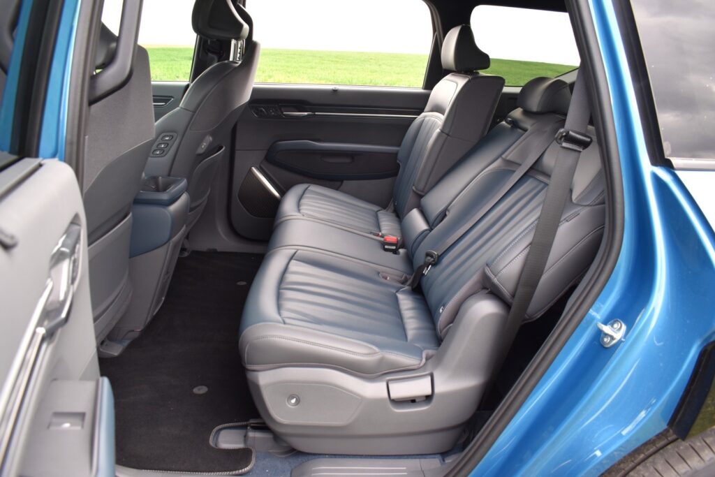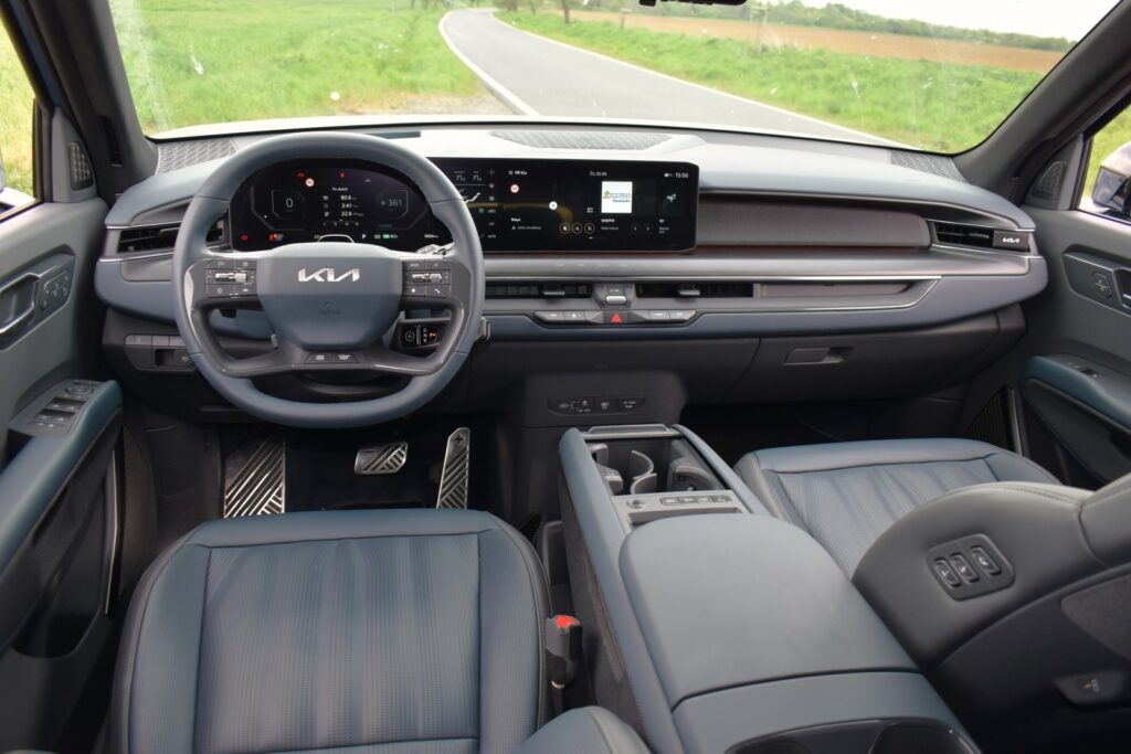 Kia EV9 je mimořádně velké a všestranné SUV s vysoce variabilním interiérem. I v základní výbavě nabízí sedmimístné uspořádání, sedadla v prvních dvou řadách jsou vždy vyhřívaná a ventilovaná, sedadla řidiče a spolujezdce disponují relaxačním režimem pro odpočinek během nabíjení. Třetí řada sedadel je součástí rovné podlahy zavazadlového prostoru. Po jejich vyklopení se do nich bez větších problémů usadí i dospělí cestující, objem pro zavazadla se zmenší na 308 litrů. Pod přední kapotou lze využít další devadesátilitrový prostor pro kabely či zavazadla. Verze s pohonem 4×4 kvůli motoru vpředu nabízí objem 52 litrů.