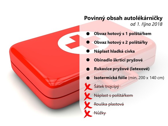 „Povinnou výbavu a obsah lékárničky v autech jsme zjednodušili. Nově v autě v rámci povinné výbavy nemusí být náhradní pojistky, rezerva, klíč na matice ani příruční zvedák – ovšem pouze za předpokladu, že má provozovatel auta zajištěnou asistenční službu, která výměnu poškozené pneumatiky na území České republiky nepřetržitě dělá,“ říká ministr dopravy Dan Ťok. V lékárničce pak nově od 1. října nemusí být trojcípý šátek, náplast s polštářkem a plastová rouška a lékárničku nebude nutné měnit kvůli expiraci.